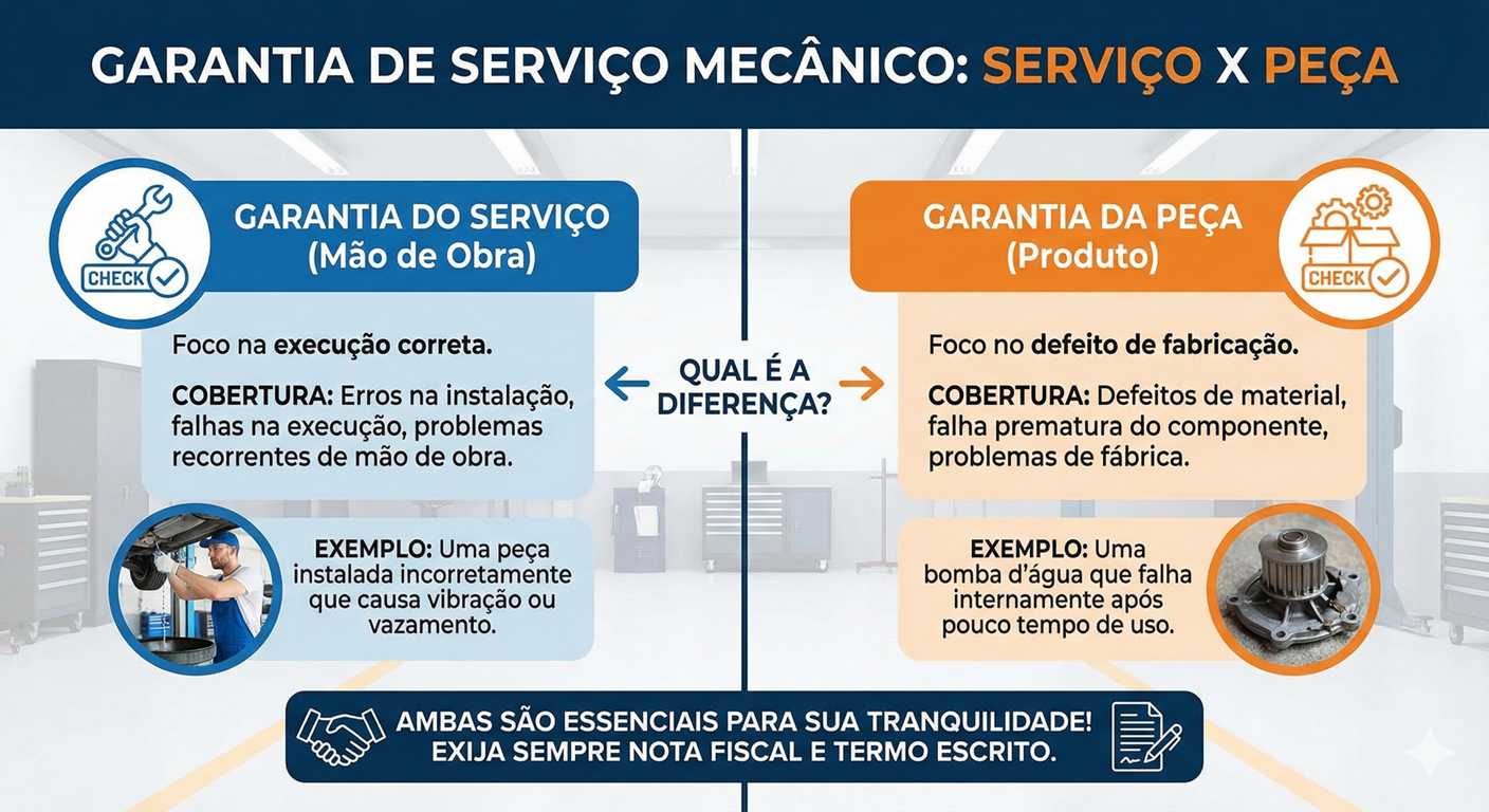 - Precisa estar descrita por escrito em um termo de garantia de serviço mecânico ou na nota fiscal.